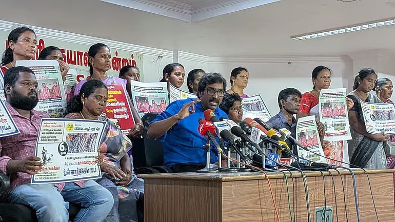 பணி நிரந்தரம் வேண்டியும், தனியார்மயமாக்கலை எதிர்த்தும் அம்பத்தூரில் தூய்மைப் பணியாளர்கள் காலவரையற்ற உண்ணாநிலை போராட்டத்தை நடத்தி வருகின்றனர். இந்நிலையில், போராட்டத்தை முன்னெடுத்து வரும் உழைப்போர் உரிமை இயக்கம் சார்பில் அடுத்தக்கட்ட நடவடிக்கைகள் குறித்து அந்த இயக்கத்தின் தலைவர் வழக்கறிஞர் கு. பாரதி சென்னையில் செய்தியாளர்களை சந்தித்தார்.